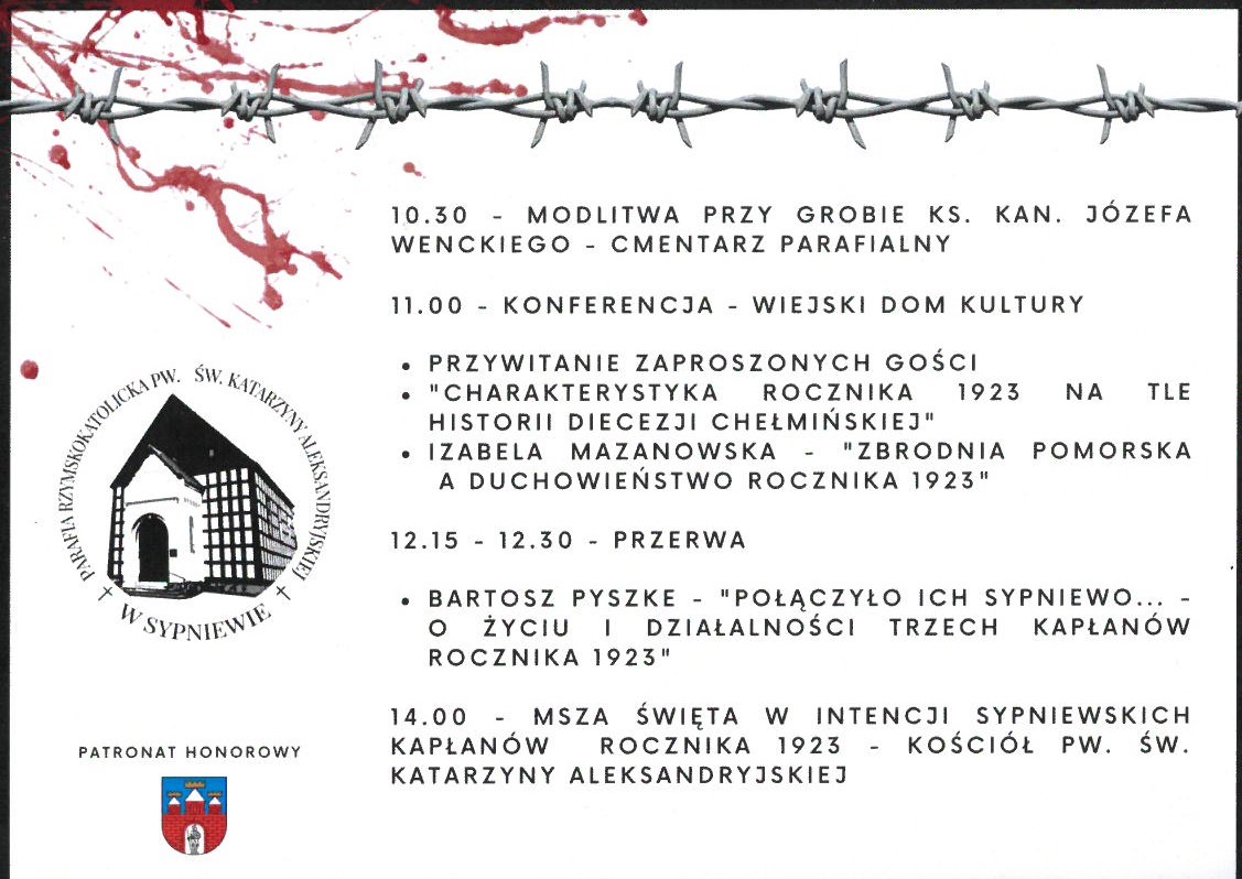17 czerwca 2023 r. w Sypniewie odbyły się uroczystości związane z 100. rocznicą święceń kapłańskich ks. Piotra Sosnowskiego, ks. Ambrożego Lewandowskiego i ks. kan. Józefa Wenckiego. W wydarzeniu uczestniczyła dr Izabela Mazanowska z Referatu Badań Historycznych Delegatury Instytutu Pamięci Narodowej w Bydgoszczy, która wygłosiła prelekcję pt. „Zbrodnia pomorska a duchowieństwo rocznika 1923”.
