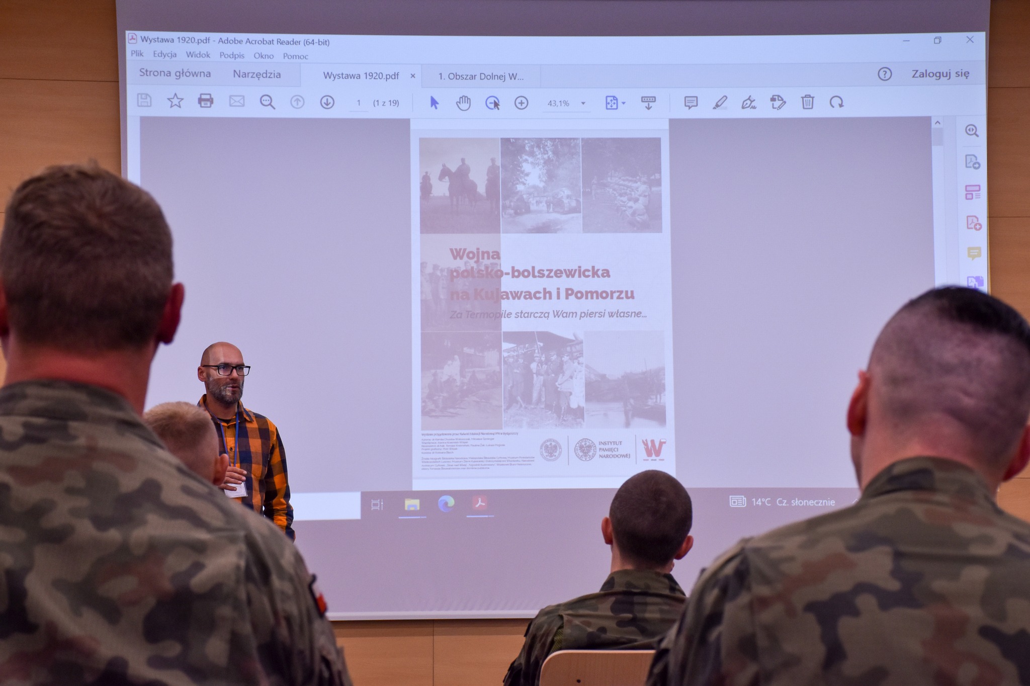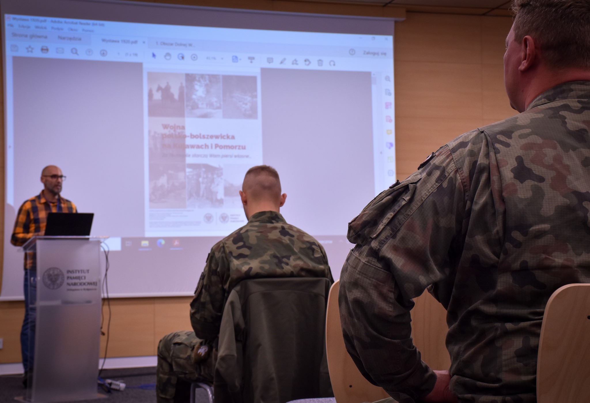 Kierownik Referatu Edukacji Mirosław Sprenger wygłosił prelekcję poświęconą bitwie warszawskiej 1920 r. Wykład oparty został na podstawie wystawy edukacyjnej „Wojna polsko-bolszewicka na Kujawach i Pomorzu. »Za Termopile starczą Wam piersi własne…«”