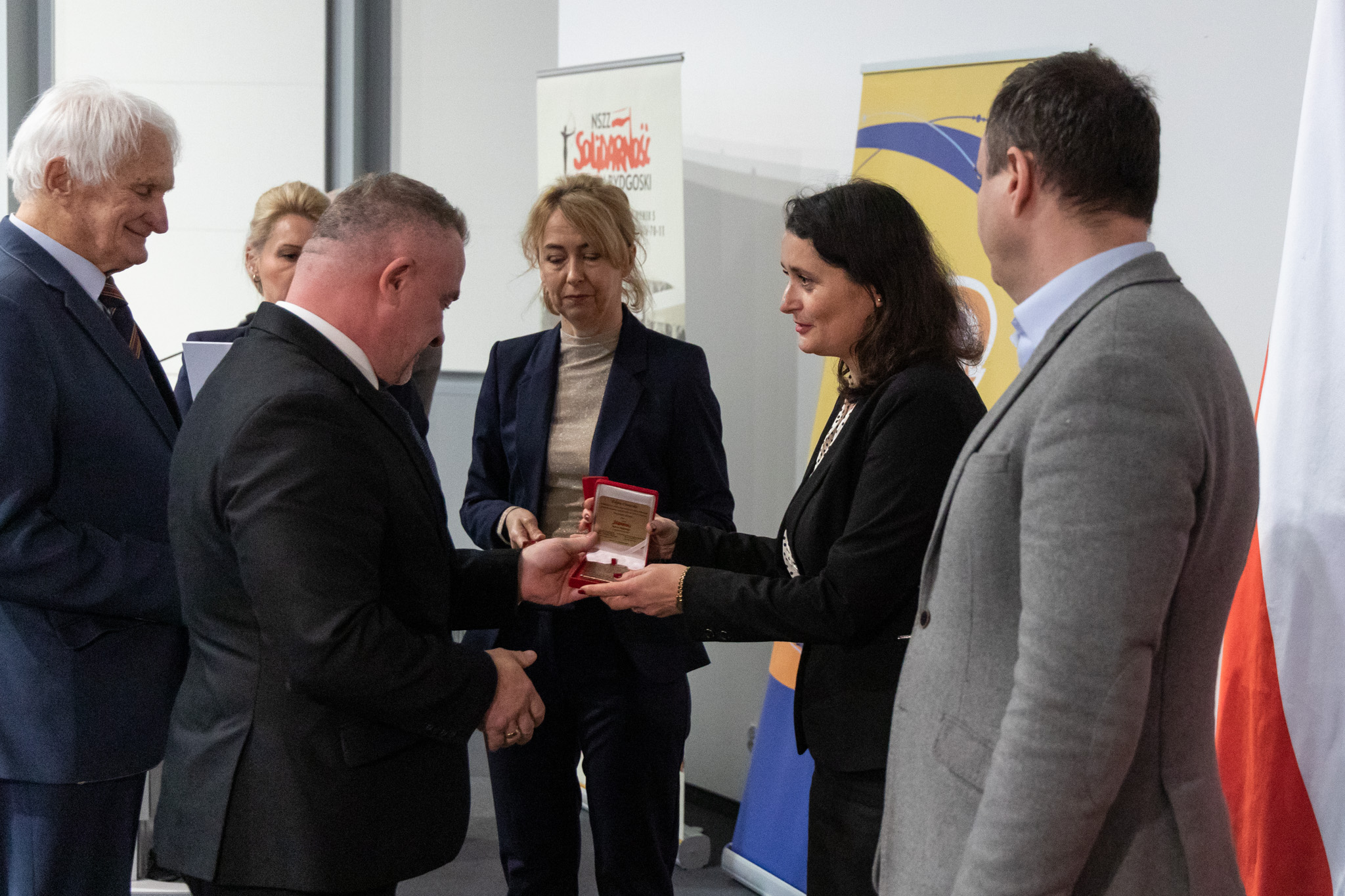 Wojewoda Mikołaj Bogdanowicz w trakcie uroczystości wręczył Medale Wojewody Kujawsko-Pomorskiego osobom, które swoją pracą i działalnością przyczyniły się do kultywowania historii naszego regionu oraz „Medale Solidarności – Zasłużony dla Regionu Bydgoskiego”.