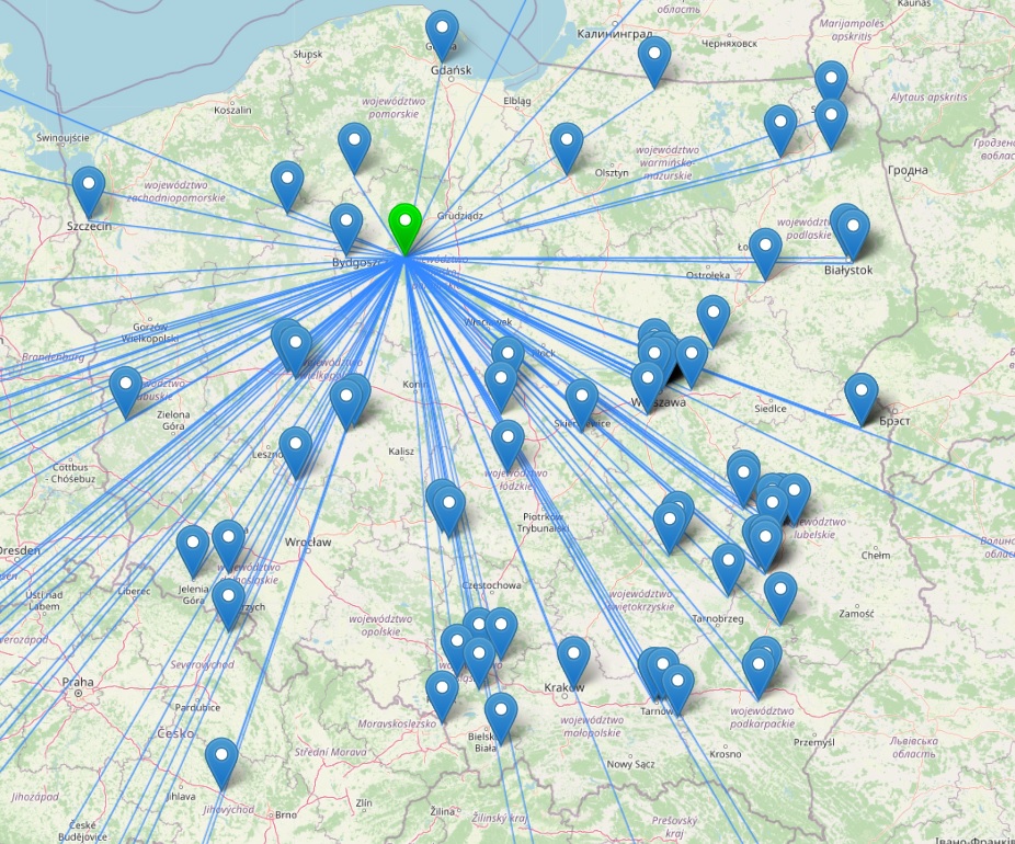 Mapki poniżej przedstawiają zasięg stacji krótkofalarskiej SN40KJP na terenie Polski i Europy: