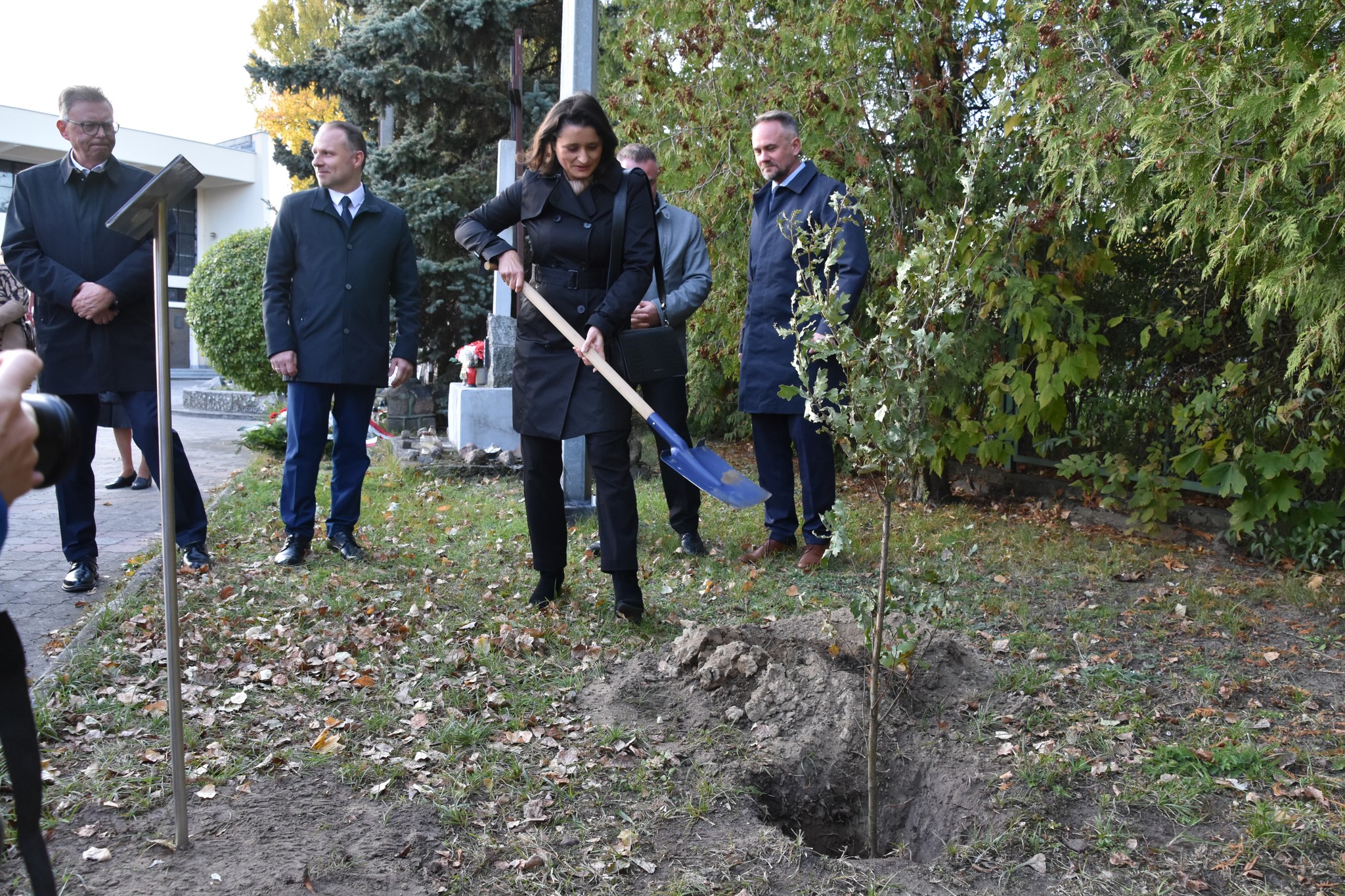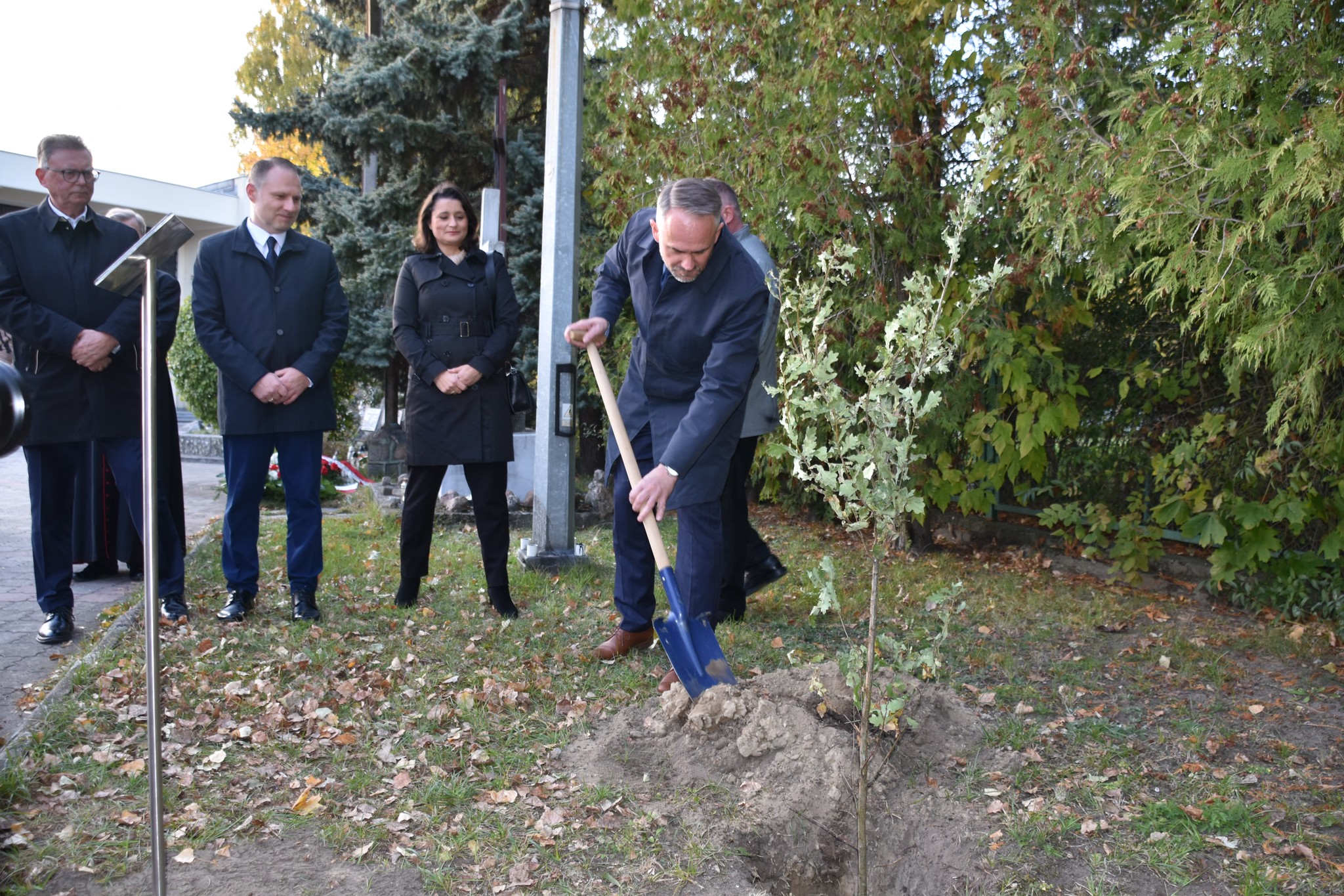 Kolejnym elementem uroczystości było zasadzenie dębu ks. Jerzego, w parku pamięci przy kościele. Drzewko zostało zasadzone przez m.in. dyrektora Szymaniaka, naczelnik Cisewska, przewodniczącego Gawronka, senatora Jana Rulewskiego.