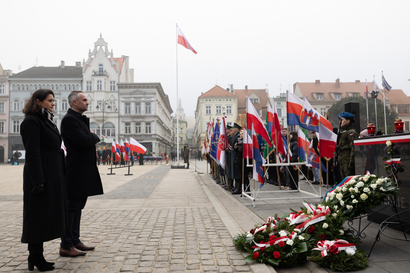 Główna część obchodów miała miejsce na Starym Rynku, gdzie złożono kwiaty w asyście wojskowej.