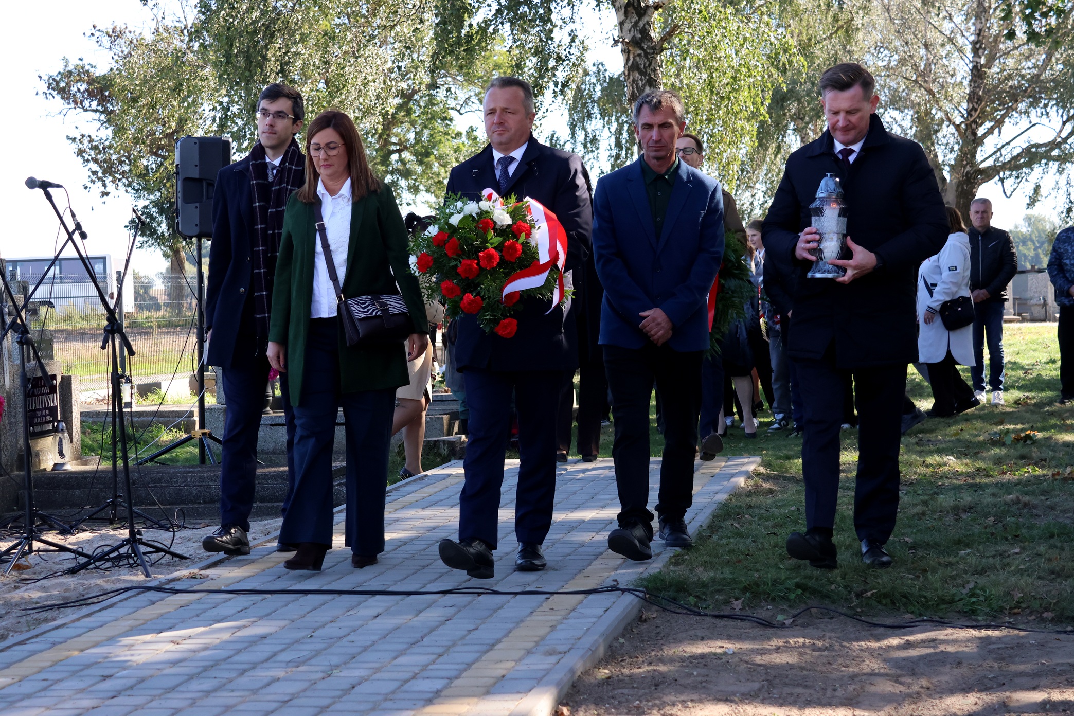 Uroczystość rozpoczęła msza święta w kościele pw. św. Mateusza, po której uczestnicy przeszli na cmentarz parafialny. Tam odbyły się występy uczniów ze szkoły w Rusinowie, złożono kwiaty oraz wygłoszono przemówienia poświęcone historii rodziny Trzcińskich. Delegaturę IPN w Bydgoszczy reprezentowała naczelnik Edyta Cisewska.