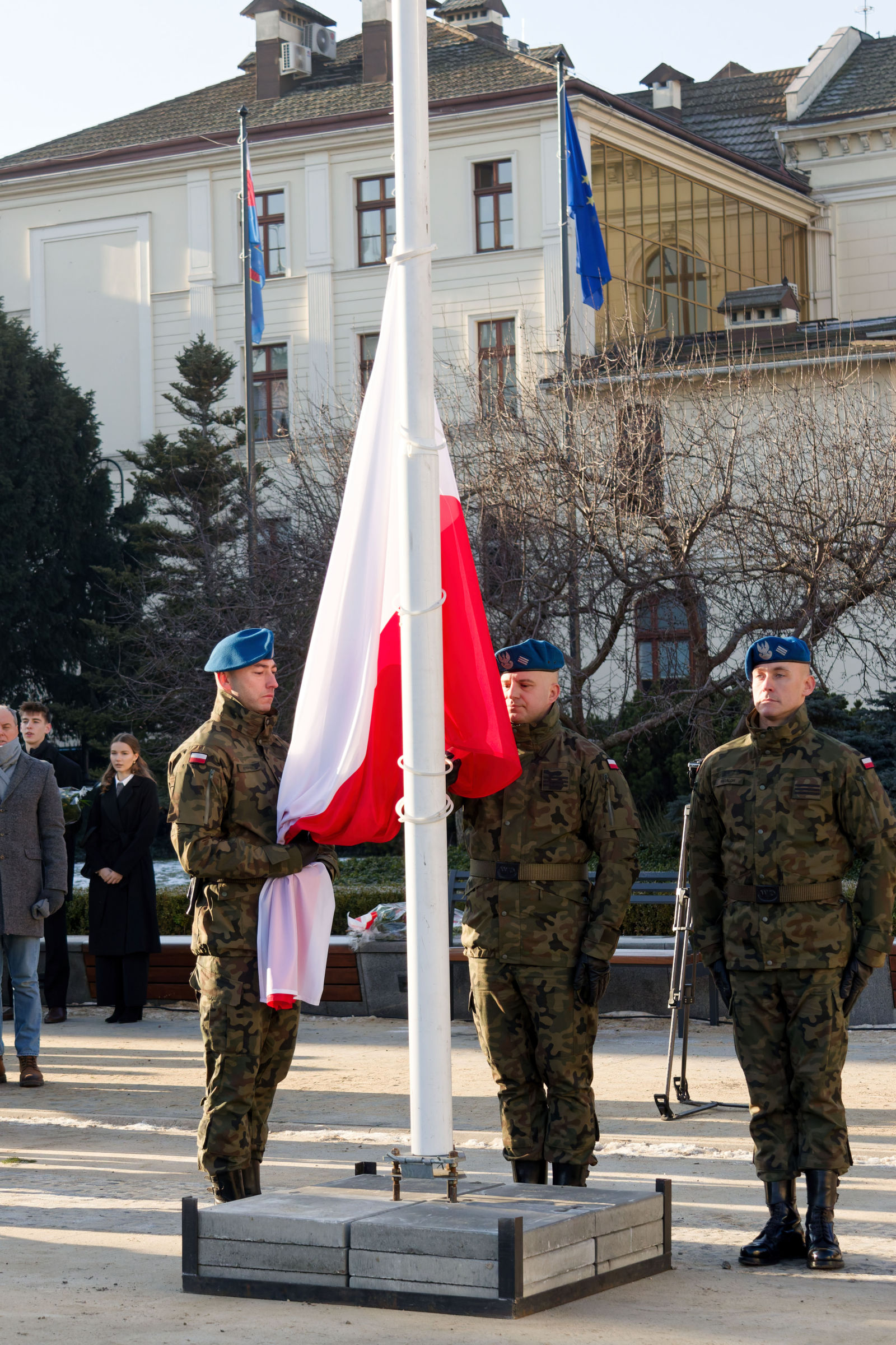Główna część obchodów miała miejsce na Starym Rynku, gdzie złożono kwiaty w asyście wojskowej.