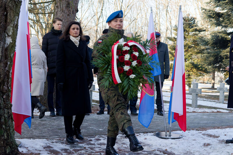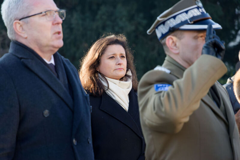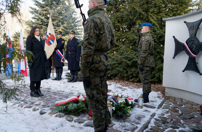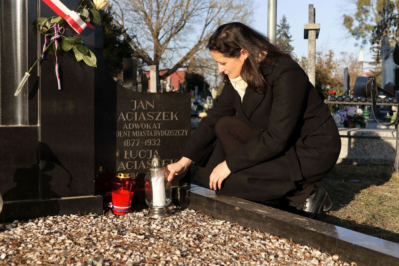 Po oficjalnych uroczystościach zapaliła znicz na  bydgoskim cmentarzu Nowofarnym, by oddać hołd pierwszemu prezydentowi Bydgoszczy, Janowi Maciaszkowi, który 19 stycznia 1920 r. przejął władzę w mieście, przygotowując grunt pod powrót Bydgoszczy do Polski.