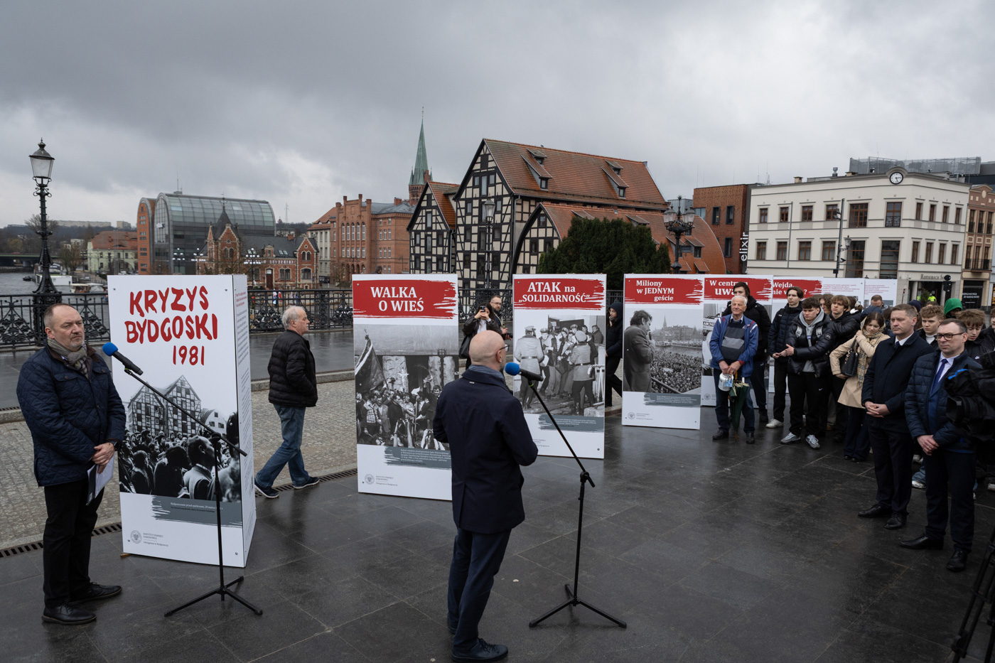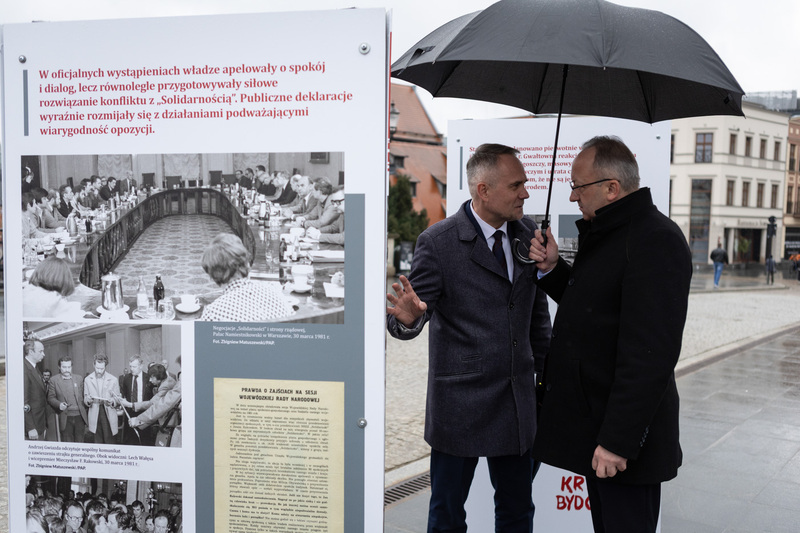 Uroczystości rozpoczęły się przy moście im. Jerzego Sulimy-Kamińskiego na ul. Mostowej, gdzie zaprezentowano przygotowaną przez Instytut Pamięci Narodowej wystawę plenerową „Kryzys Bydgoski 1981”. Ekspozycja przypomina wydarzenia z marca 1981 r. oraz ich znaczenie dla historii „Solidarności” i walki o prawa obywatelskie w Polsce.