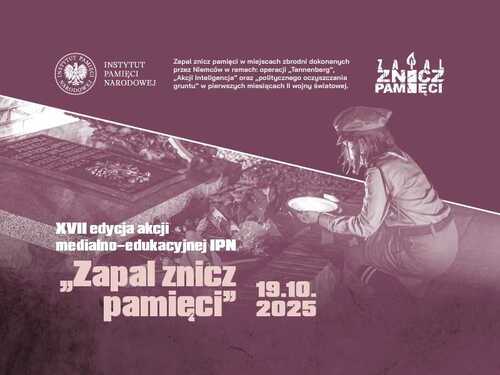 Już po raz siedemnasty zachęcamy do udziału w akcji "Zapal znicz pamięci". Odbędzie się ona 19 października i w szczególny sposób poświęcona jest ofiarom operacji "Tannenberg", "Akcji AB" oraz "Akcji Inteligencja".